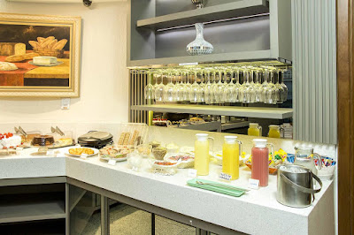 Guests at Hotel Santorini can enjoy a daily breakfast buffet with croissants, natural juices and jams.